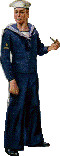 Naval uniforms are of a very dark blue in the colder months, bleached white in the warmer. Officers' uniforms consist of a white collared shirt, black tie, and jacket and trousers fitting the season. The uniforms of the enlisted ranks, sewn of a durable dark blue or white canvas, according to season, have bell-bottomed trousers and pull-over jackets with open v-necks which show the colors of their fleet (blue, Northern; red, Western; green, Southern; gold, Eastern) in the horizontal stripes of crew-neck undershirts.