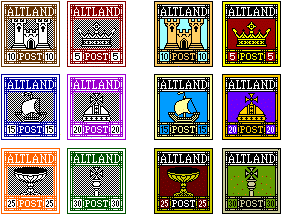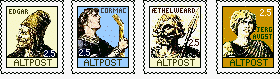 In celebration of the restoration of the monarchy, Altland is issuing a set of commemorative two-and-a-half-scilling first class letter stamps featuring the portraits of Altlandic monarchs from the beginning to the present. The first four of the set are pictured below.